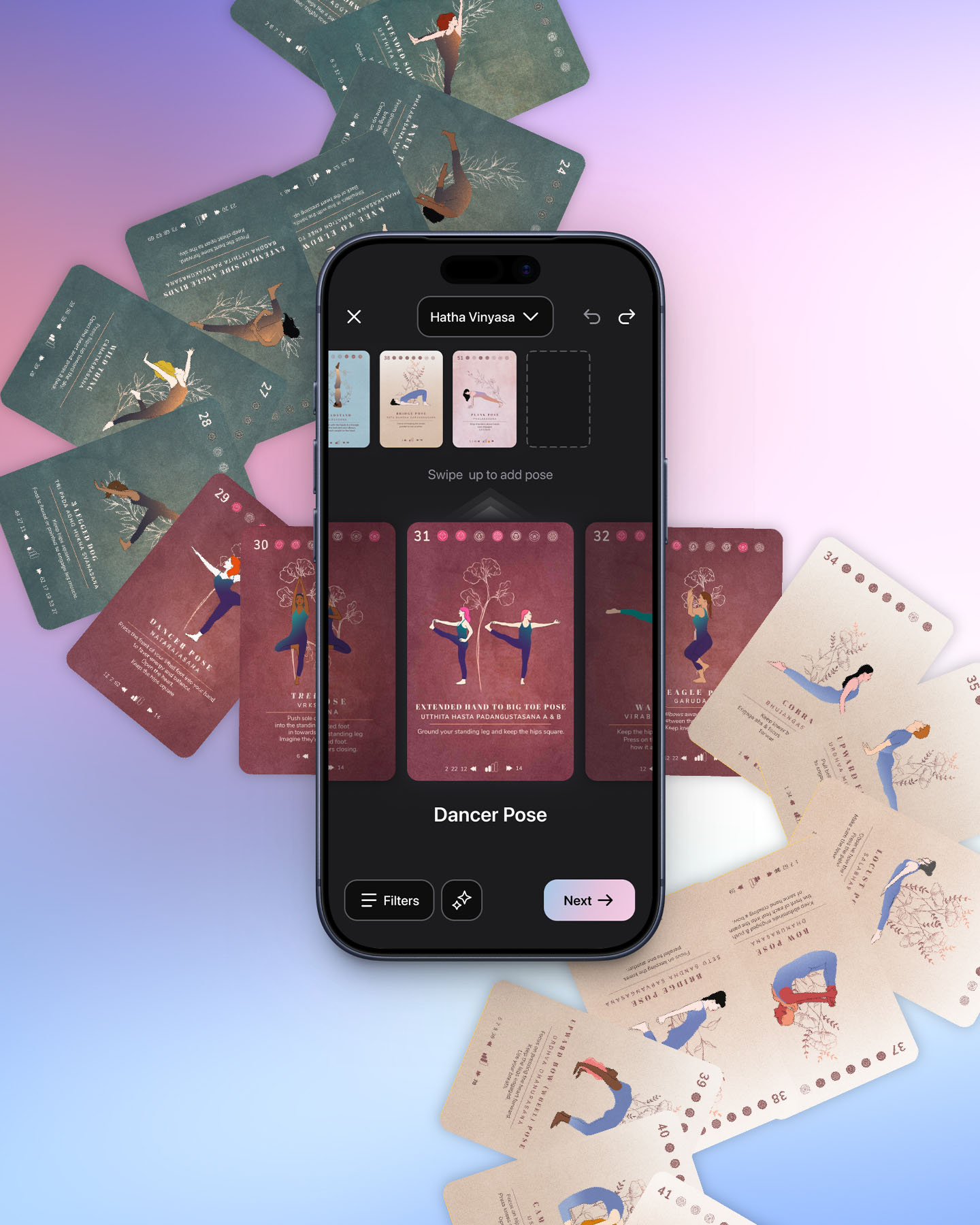 Imagine crafting your ideal yoga sequence in a completely screen-free environment, using nothing but your physical PlayPauseBe® deck of cards.